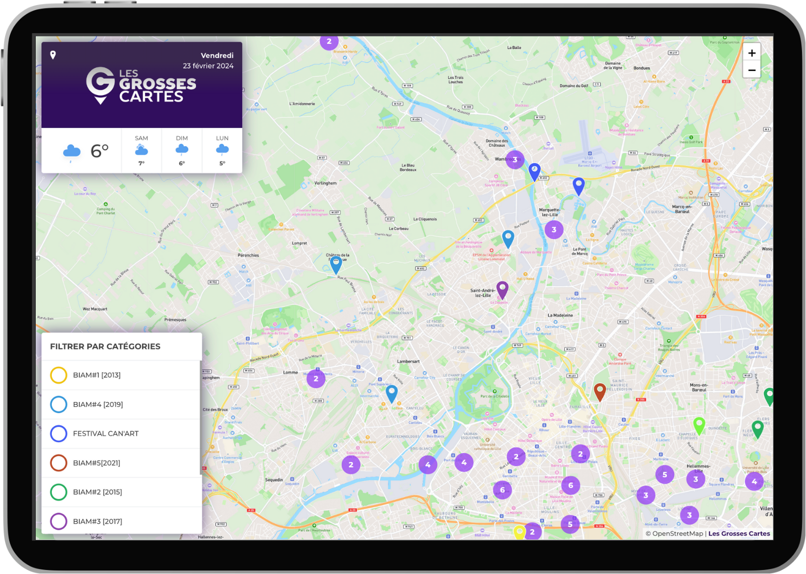 Les cartes interactives LesGrossesCartes ont été pensées pour vous permettre de mettre en avant vos points d'intérêt (points de ventes, évènements, lieux culturels, articles de presse…). Offices de tourisme, entreprises multi-points de vente, site média local, store-locator avancé ... notre offre s'adresse aux professionnels. Peu importe le secteur d'activité.